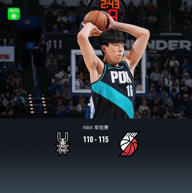 开拓者115110险胜马刺,杨瀚森2分2板1助2帽,阿夫迪亚29+11+10