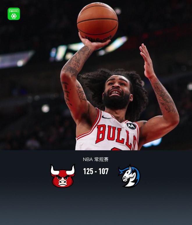 第四节公牛赫尔特拿下8分,独行侠杰登-哈迪拿下11分,最终公牛125-107战胜独行侠