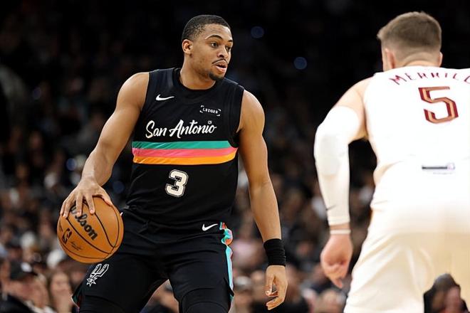 本场比赛中,马刺虽然输掉了比赛,但是球队的替补侧翼大将凯尔登-约翰逊(Keldon Johnson)也算是尽力了。约翰逊全场出场25分59秒,投篮8中5,三分线外4中3,罚球2中2,得到了15分2篮板的数据,还有1次失误和3次犯规,正负值为-4。约翰逊的出场时间和出手次数其实都并不多,但是他还是抓住了有限的机会得到了不少的分数,在进攻端为球队提供了大量的帮助和支持,也展现出了自己全面的得分能力。在其他球员手感不佳的情况下,他也是能够扛起球队的进攻大旗并且发挥出自己的特点。除此之外,约翰逊在防守端也算是中规中矩,也没有什么太大的问题。很显然,要不是有约翰逊,马刺只会输得更惨,而如果约翰逊能够得到更多的出场时间和更多的信任,如果他能够在关键时刻留在场上,说不定比赛的局面也会发生一些变化。