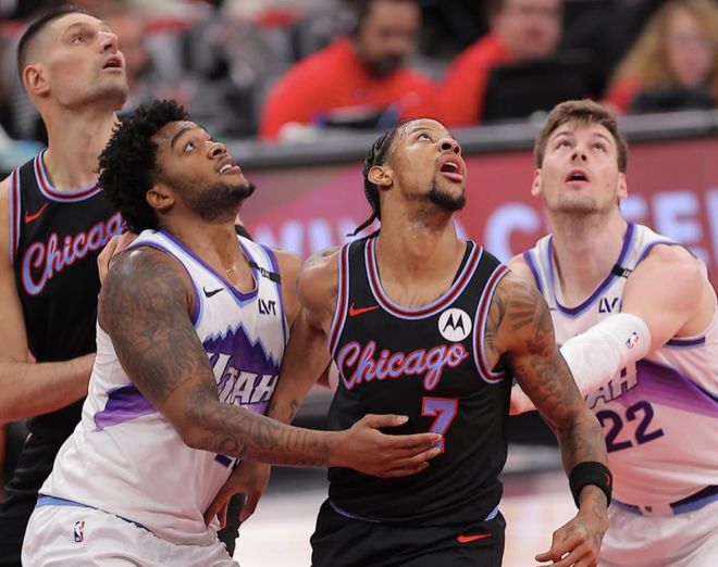 两支球队近期状态不佳,球队排名也不佳,这次上来两队也是没有啥防守,就是在进攻端对飙,两队你来我往,可在第二节爵士未能跟上节奏,公牛则一举将分差拉开,半场取得9分领先。下半场爵士找回手感成功追上比分,之后两队陷入拉锯战,分差一直没有拉开,森萨博突破打进扳平,可武切维奇篮下打进完成准绝杀。
