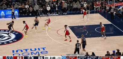 与哈登挡拆,腾空吃饼一气呵成