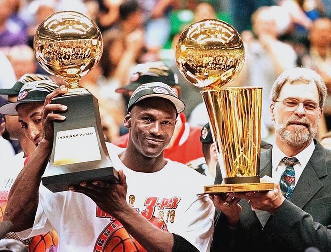 更为恐怖的是,他们在季后赛中经历了一番激战,在总决赛成功击败了爵士队,乔丹上演了载入史册的“世纪一投”,完成了个人的六冠王朝,统治了整个九十年代,同时也拿到了个人生涯的第6座总决赛MVP,自此也是完成了第二次的单赛季MVP大满贯。