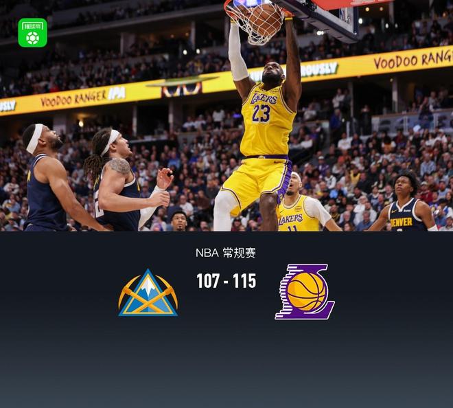 湖人115107逆转掘金,东契奇38+13+10,詹姆斯19+9+8,穆雷28+11