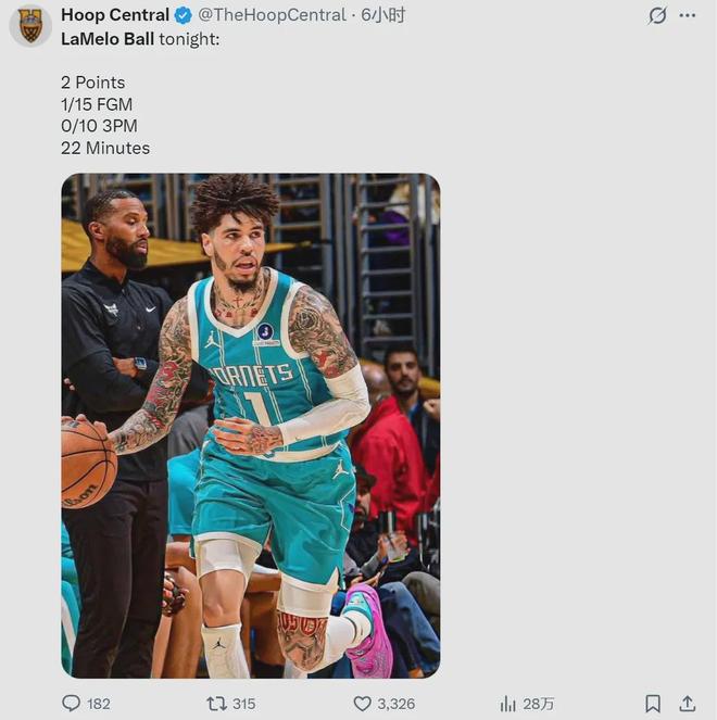 三球本场比赛投篮命中率只有6.7%,成为NBA本赛季单场出手15+的最低命中率。此外,三球也是本赛季第三位单场三分球10中0的球员,此前两位分别是加兰和小贾巴里-史密斯。同样是今天,NBA官方公布了最新一期的新秀榜。