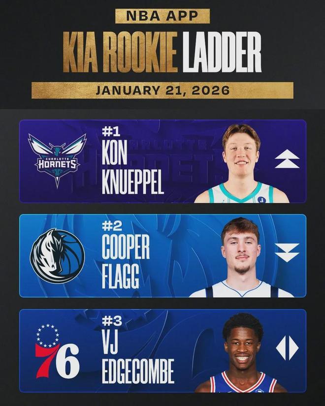 - NBA官方公布了最新一期的新秀榜,黄蜂新秀克尼佩尔升至第1,弗拉格退居第2,76人探花秀继续排名第3。值得一提的是...发表于: 01-22 14:55
