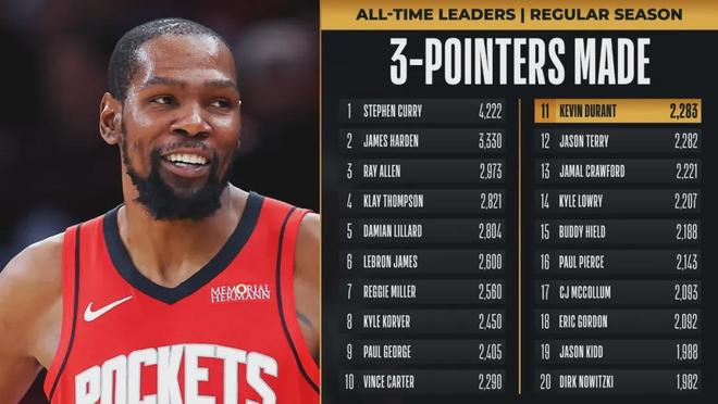 掀翻东部第一!杜兰特背靠背85分钟!三分命中数升至历史第11