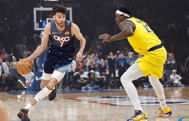 NBA常规赛,雷霆坐镇主场迎击步行者。这两队可是去年总决赛交锋的队伍,雷霆鏖战抢七击败步行者赢得总冠军。而本赛季,雷霆依旧强势,作为最大夺冠热门,而步行者却跌落神坛,沦为鱼腩