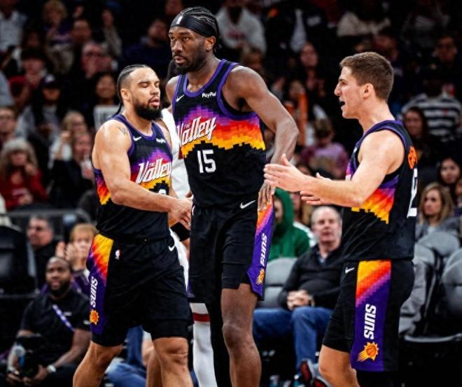 太阳核心布克因伤缺阵,刚复出的杜兰特又遭遇小腿拉伤提前离场,主打团队篮球的他们瞬间失去攻坚支柱。首节奥科吉状态低迷频频打铁,狄龙·布鲁克斯、格雷森·阿伦、吉莱斯皮临时挑大梁,热火阿德巴约、鲍威尔却火力全开,一波32-21的攻势直接拉开分差。第二节狄龙·布鲁克斯和格雷森·阿伦联手爆发,太阳进攻稍有起色,但防守端漏洞百出,热火多点开花保持10分领先。第三节太阳发力追分,无奈末节突然哑火,热火趁机扩大优势,最终收下胜利。这场球暴露太阳团队篮球的致命缺陷,没有核心球星兜底,看似均衡的阵容一碰硬仗就原形毕露。