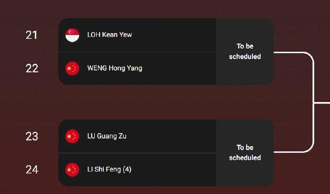 混双签表,国羽仅3对参赛也撞签,冯彦哲/黄东萍首轮对阵队友高家炫/吴梦莹。