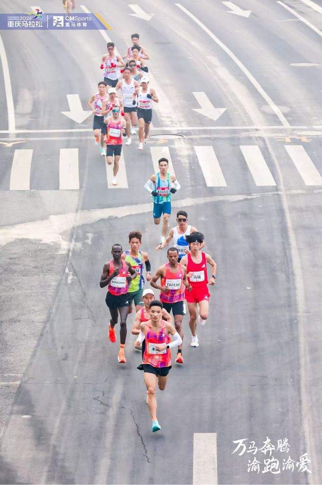最后6公里,塔费雷面对一路下坡,彻底接管了比赛,甚至有余力回头确认身后的空旷。最终,他以2:08:28的成绩夺得2026年重庆马拉松男子冠军。这也是他职业生涯中的第一个金标赛事冠军。