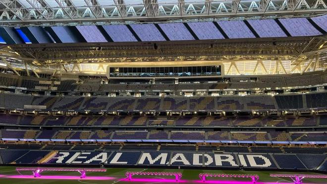 这个周日,伯纳乌将迎来本赛季的首次国家德比。在西侧看台上,为了这场比赛特别准备的马赛克将再次展示同一个词:“伟大”。而在南看台,卡纸将组成皇家马德里队徽的一部分,呈现出一场充满活力的舞台布置,既传递出俱乐部的身份,也唤起了马德里精神。