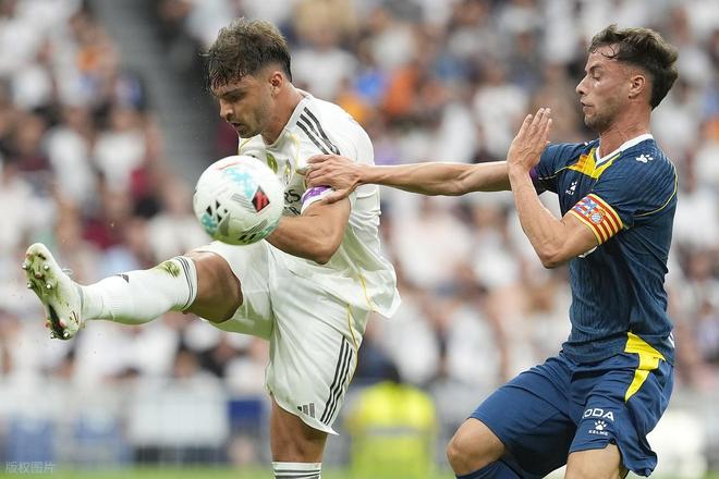 第65分钟,皇马右路快攻,马斯坦托诺精妙直塞,姆巴佩高速插上突入禁区右侧小角度扫射,门将德米特罗维奇奋力将球扑出,姆巴佩跟进补射又被德米特罗维奇挡出,维尼修斯小禁区左侧抢到第3落点小角度再补射,BOOM的一声皮球被门柱挡出,维尼修斯再将球抢到重新组织进攻,姆巴佩接球大力兜射,皮球擦着顶网出了底线。西班牙人这边难以制造机会,补时阶段,罗卡禁区弧顶前倒是有个机会,只不过他抽射被挡折射也是偏到球门之外出了底线。最终,皇马主场2:0完胜西班牙人,继续保持全胜。