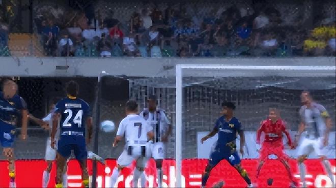 在本场比赛第43分钟,尤文球员若昂-马里奥在禁区内手球,主裁判拉普阿诺第一时间没有吹罚,但VAR随即介入,主裁判拉普阿诺到场边观看VAR后,改判点球,维罗纳依靠这个点球将比分扳平的。