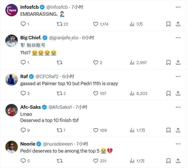 “他们竟然将帕尔默排在佩德里之前,真是耻辱!!”