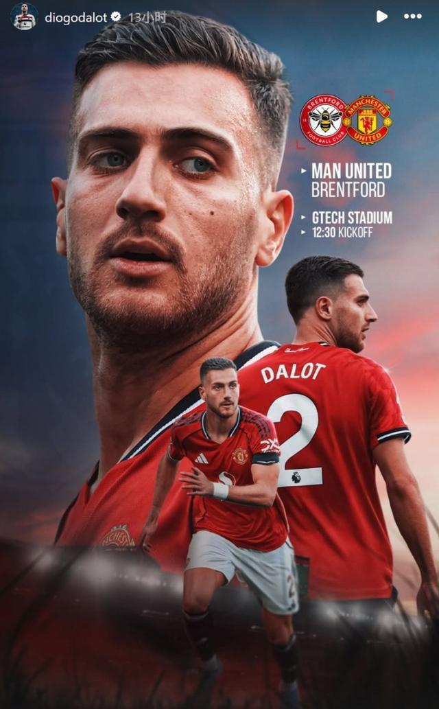 9月27日讯 本轮英超曼联将在客场迎战布伦特福德。曼联球员达洛特也在个人社媒晒出海报为本场比赛预热,本场比赛将在北京时间今晚19:30打响。独家看英超就在咪咕