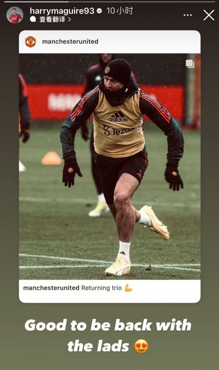 马奎尔也晒出自己在训练中的照片,并写道:和小伙子们重聚了,太开心啦!