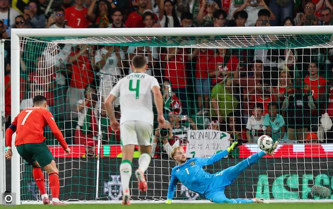 爱尔兰在欧洲区世界杯预选赛客场0-1憾负葡萄牙,首发出场的门将凯莱赫在本场比赛当中一度扑出C罗的点球。