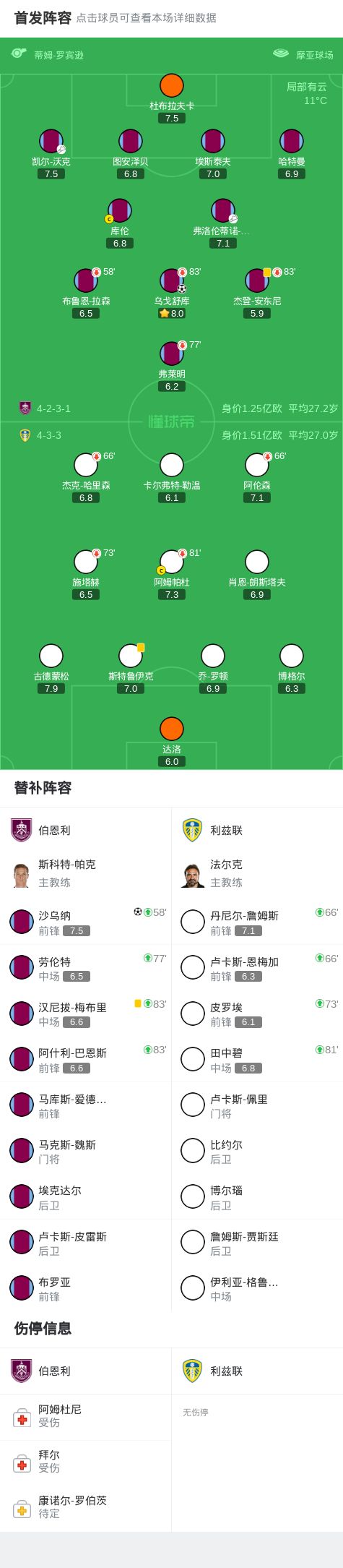 伯恩利20利兹联,乌戈舒库建功,沙乌纳锦上添花