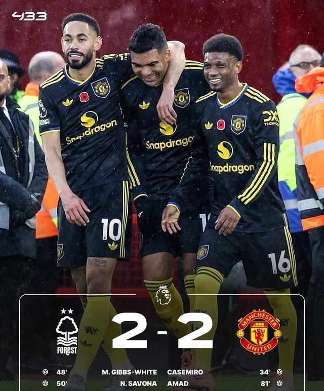 第81分钟,当阿马德-迪亚洛的凌空抽射划破城市球场的夜空,曼联勉强从悬崖边拽回一分。北京时间11月1日23点,25-26赛季英超第10轮,曼联客场挑战深陷降级区的诺丁汉森林,结果遭遇2-2