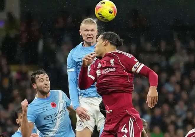 曼城和利物浦的对决是本轮最晚结束的,主场作战的曼城气势如虹,从比赛一开始就展现了强烈的求胜欲望,多库犀利的突破表现活跃,第12分钟造点成功,可惜哈兰德的点射被门将马马尔达什维利扑出。第28分钟,场上的进球出现,第28分钟努内斯传中,哈兰德头球破门,这是他生涯在英超的第99粒进球。第39分钟红军由范戴克攻入一球,可惜罗伯逊越位位置干扰了门将,进球被取消。上半场快结束的时候,冈萨雷斯远射,皮球打在范戴克身上折射入网,曼城2-0领先。