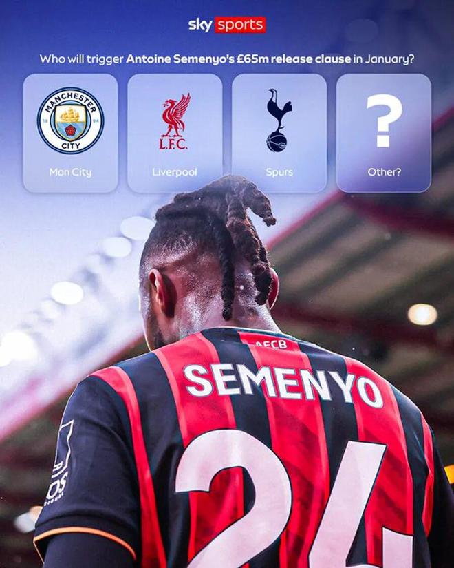 英国天空体育披露,塞门约今夏续约的5年新合同规定的违约金,为6000万英镑固定金额,外加500万英镑的浮动条款,总额6500万英镑,只在1月份冬窗初期的一个特定时段生效,以确保伯恩茅斯有时间寻找替代者。但曼联在1月份签他几无可能,尤其是阿莫林的优先目标是一名中场新援的前提下。