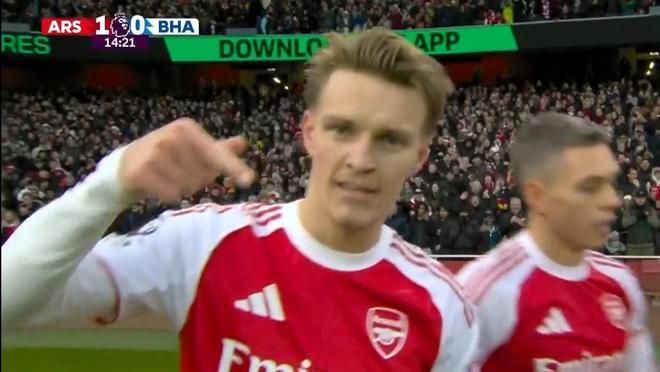 此役主场对阵布莱顿,比赛第14分钟,厄德高在禁区外接萨卡传球后远射破门,帮助阿森纳取得1-0领先。