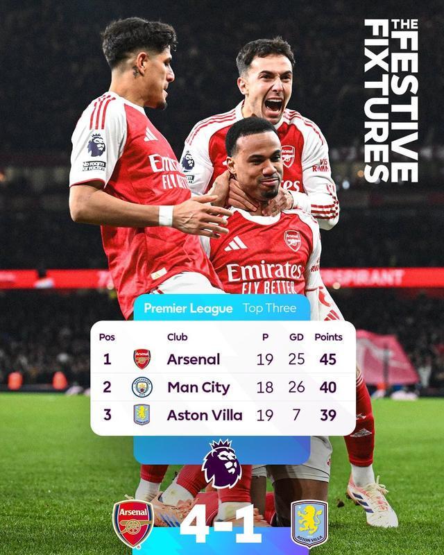 英超第19轮,阿森纳主场4-1击败维拉,解说了本场比赛的知名评述员詹俊发文点评。