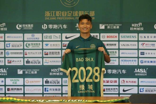 官方:浙江队与22岁中场鲍盛鑫续约至2028赛季