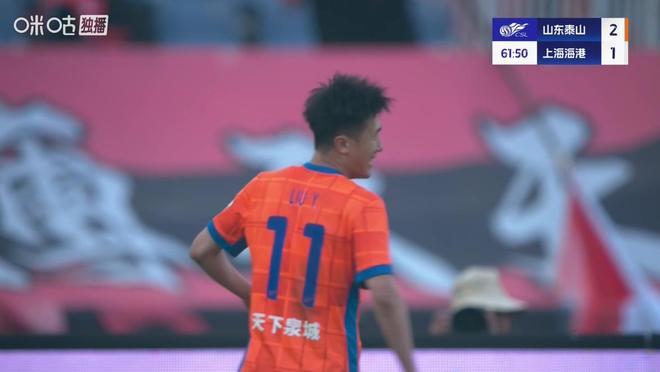 下半场易边再战,泰山队率先创造出机会,克雷桑第49分钟头球冲顶击中横梁。第62分钟,泽卡反越位成功,单刀球直入禁区后横传,刘洋轻松推射破门,泰山队2-1将比分反超。
