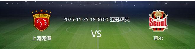 北京时间11月25日晚18:00,亚冠精英赛联赛阶段第5轮将上演一场令中国球迷无比关注的比赛,刚刚在中超斩获3连冠的上海海港坐镇主场迎战实力强劲的韩国K联赛球队首尔。别看上海海